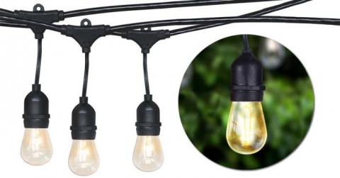 - Kábel: 14,6 méter hosszú fekete gömb kábel, 15 darab E27 foglalattal + betáp szett. Foglalatok távolsága: 96cm. Sorolható, toldható égősor.