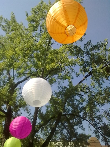A kültéri lampionok anyaga nejlonos, selymes hatású anyag, mely jóval strapabíróbb és tartósabb a hagyományos papír lampionoknál. Kíváló kültéri használatra.