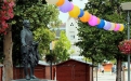 A kültéri lampionok anyaga nejlonos, selymes hatású anyag, mely jóval strapabíróbb és tartósabb a hagyományos papír lampionoknál. Kíváló kültéri használatra.