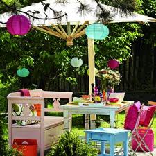 A kerti partik lényege, hogy jó színes legyen a dekoráció. Biztos a siker! Lógass a lampionok közé harmonika lampionokat is, ezek megbolondítják kicsit a hangulatot.