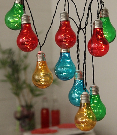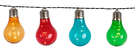 - meleg fehér izzószálas színes égősor 270cm hosszú + 50cm kábel az elemtartó tokig